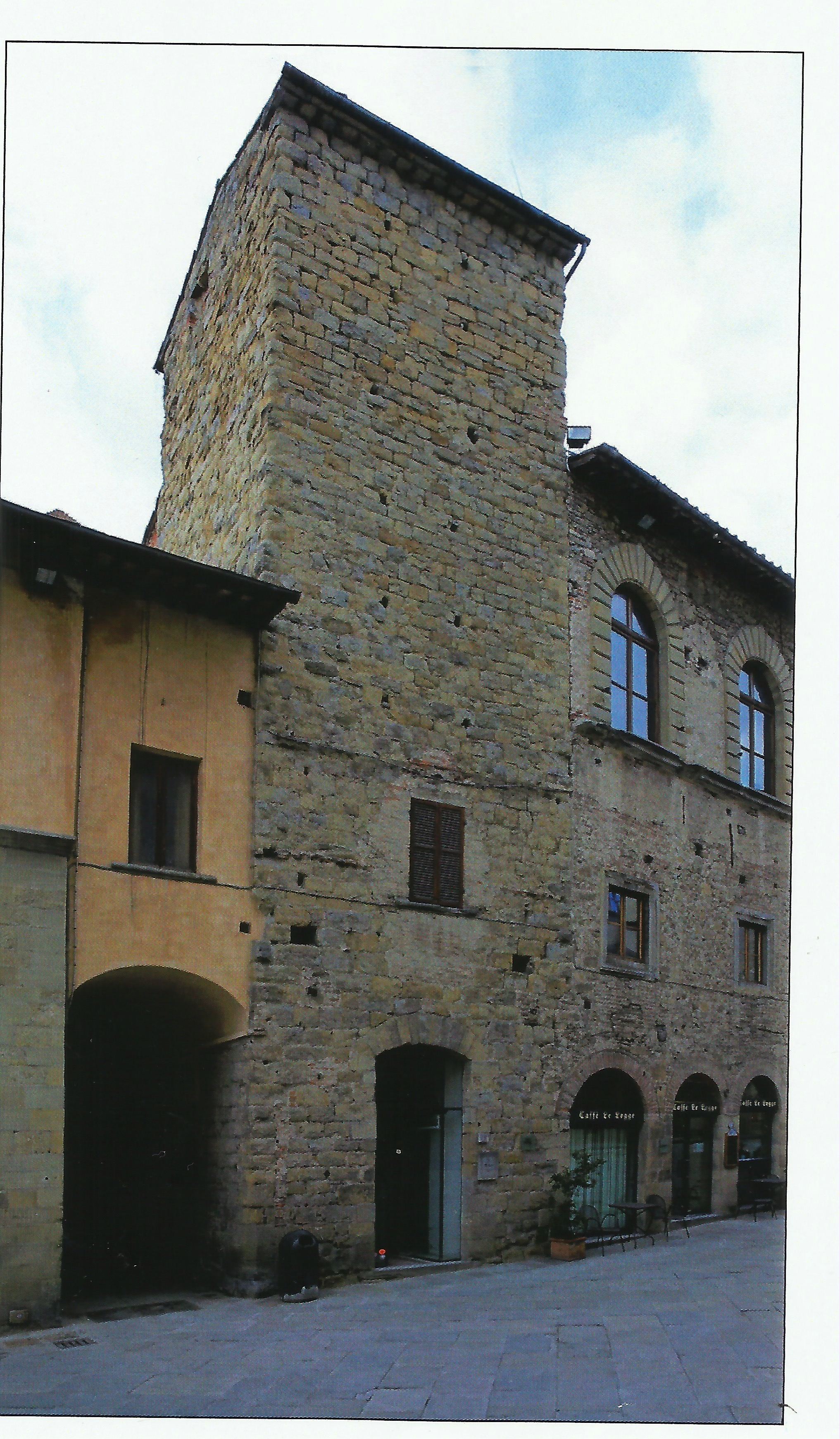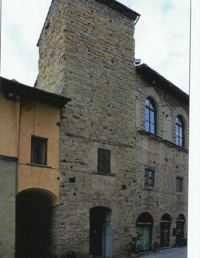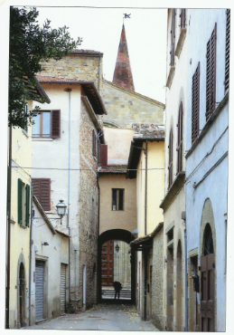 Via della Castellina si apre a fianco al Palazzo Aggiunti in Via Matteotti, e inizia con un’arcata tra due torri medievali, ormai prive della loro solennità, sotto la quale una iscrizione – quasi ignorata – recita così: