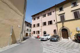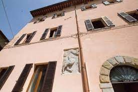CL’edificio di Palazzo Dotti si affaccia sulla piazza con il suo prospetto laterale e questo lato del palazzo si deve un ampliamento fatto nell’Ottocento, infatti l’antico ingresso si trovava in Via della Fraternita. Il palazzo presenta un pianoterra e altri due piani superiori. La facciata è sormontata da uno scudo con 4 rastrelli doppi. La famiglia Dotti di antichissime origini è già presente nel XII secolo al Borgo; di frazione guelfa, ricoprì all’epoca diverse importanti cariche. La famiglia Dotti, si divise in altri rami dislocati nelle città di Cortona e di Città di Castello. Si affacciano sulla piazzetta altri palazzetti di pregio. Sulla sinistra, in angolo con Via S. Croce, Casa Ducci che presenta accanto al portoncino bugnato, un bassorilievo con un leone rampante di pietra, ma molto rovinato. Attiguo a questo c’è il Palazzo Bartolini che fu costruito nella metà del Cinquecento. I Bartolini erano una famiglia presente fin dal Trecento a Firenze; Giovanni Bartolini fu inviato dai fiorentini al Borgo come Commissario nel 1516.